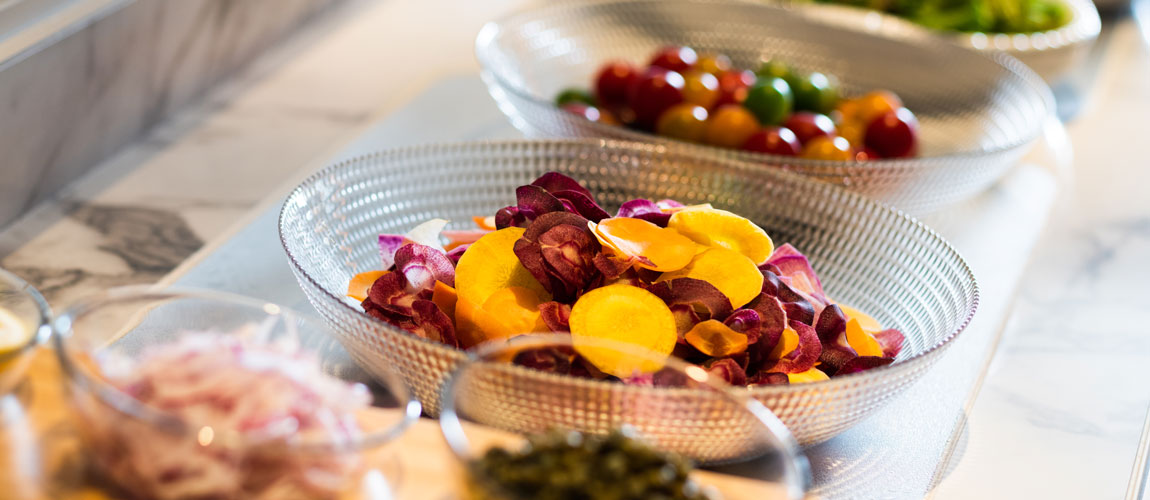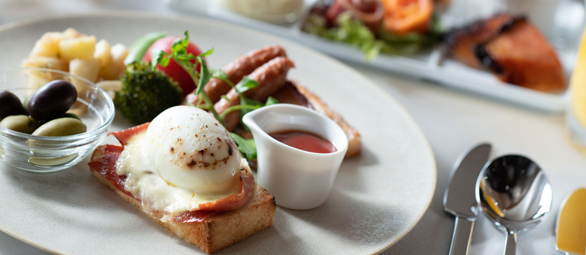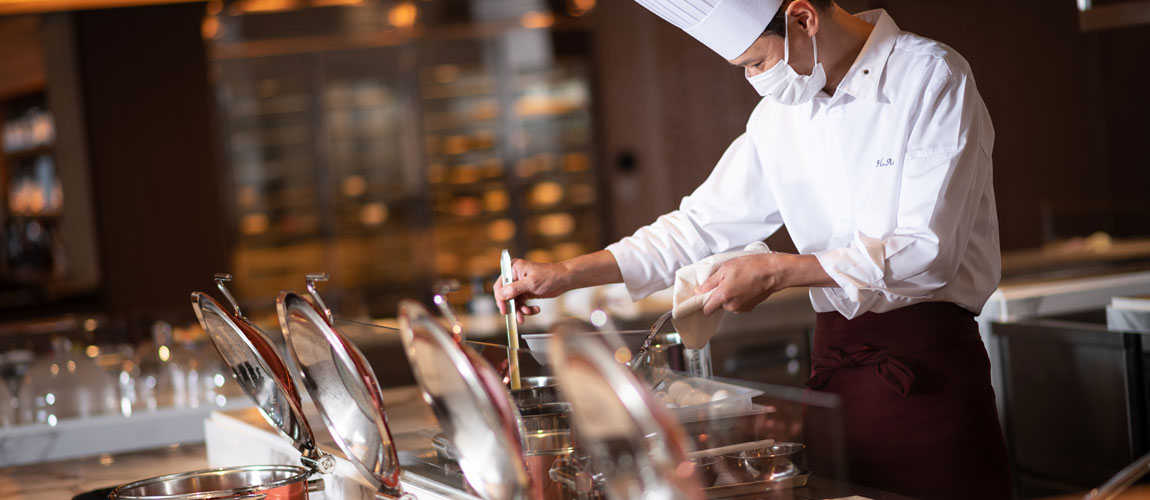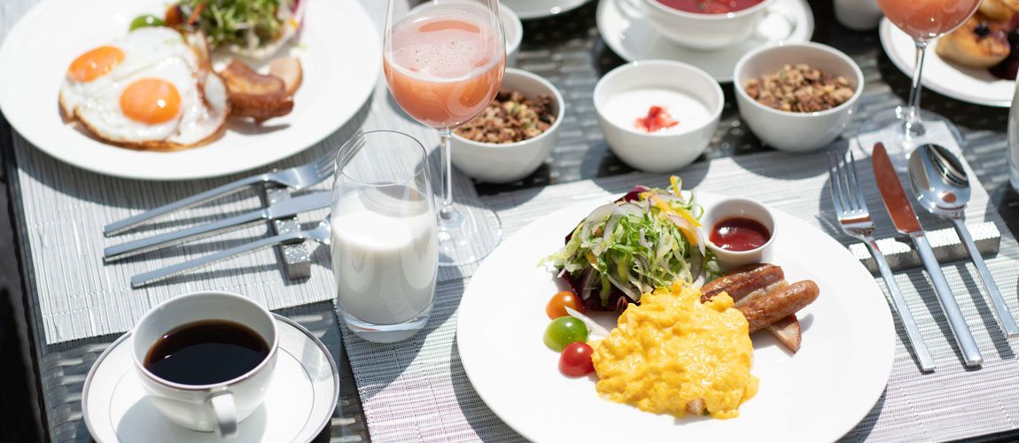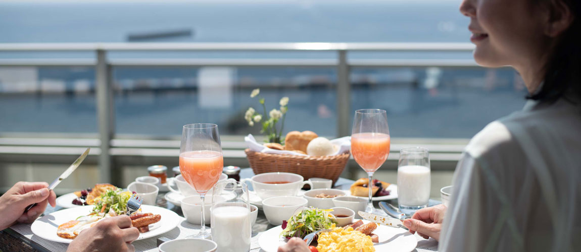 The beginning of a pleasant day. Enjoy the breakfast buffet in an open, lively atmosphere with a view of Atami Bay. Colorful salads, hot eggs cooked by the chef on the spot, and freshly squeezed juices…. You can also start your day with a Japanese and Chinese breakfast, such as white rice, grilled fish, congees, dim-sums. Guests staying at the hotel can enjoy breakfast free of charge.